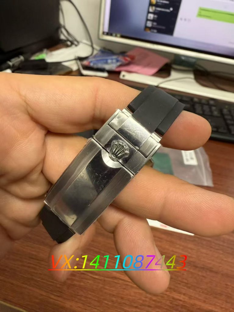 表盘设计是这款腕表的点睛之笔。黑色放射纹表盘在不同光线下能呈现渐变效果,中心区域的太阳纹与外圈的拉丝纹形成层次对比,质感远超普通印刷表盘。最引人注目的“配重钻刻”工艺尤为亮眼,时标位置采用天然钻石镶嵌,每颗钻石经过严格筛选,切工统一且光泽度饱满,镶嵌深度与原版完全一致,用放大镜观察也难辨真伪。三点钟位置的日期窗口采用弧形蓝宝石玻璃放大镜片,边缘经过防眩光处理,读取日期清晰不刺眼,窗口内的字体印刷精细,无毛刺和晕染现象。