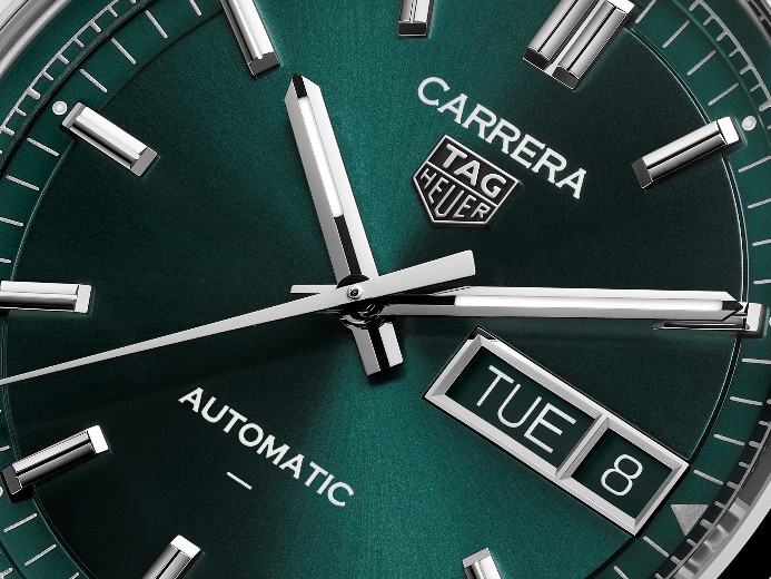 泰格豪雅卡莱拉系列星期日历型腕表新色登场:青绿雅韵,致敬赛车黄金时代