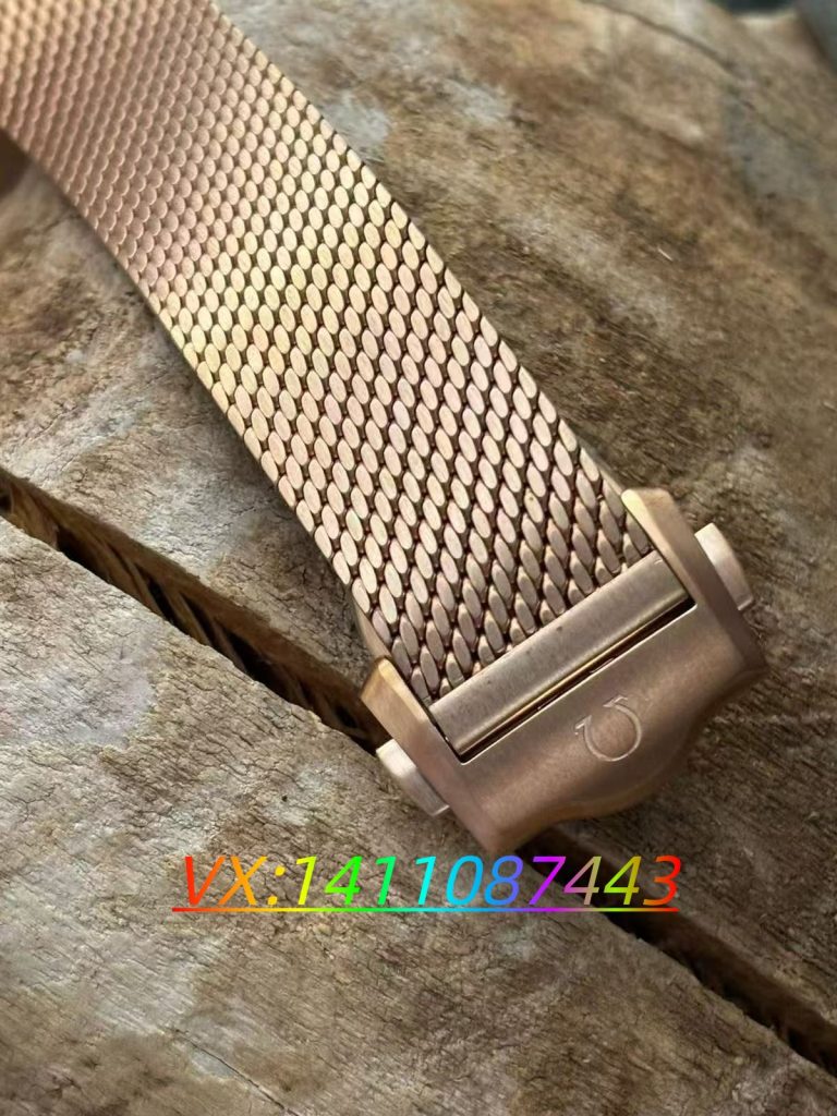 表带的工艺升级同样值得关注。与表壳材质一脉相承的真青铜表带,采用第二代新技术打造,链节之间的衔接紧密顺畅,开合角度灵活自然。表带表面经过拉丝与抛光的双色处理,链节内侧打磨光滑,佩戴时能紧密贴合手腕曲线,即便长时间佩戴也无明显压迫感。表扣采用欧米茄经典的折叠扣设计,内部刻有清晰的品牌标识与编号,开合手感清脆稳定,扣合后牢固不松动。值得一提的是,表带同样覆盖了抗氧化膜,与表壳形成统一的防护体系,避免了传统青铜表带因接触汗液而快速氧化变色的问题,延长了表带的美观周期。