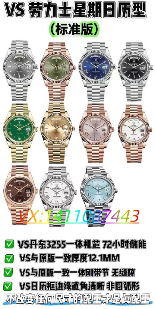 在鱼龙混杂的复刻表市场,VS 劳力士星期日历型凭借 “不改变尺寸的真配重”“1:1 开模的细节还原”“高密度一体带珠设计” 以及 “稳定可靠的丹东 3255 机芯”,树立了复刻 DD 的行业标杆。它不仅解决了市场普通版本的诸多痛点,更让消费者以亲民的价格,享受到了接近原版的品质与体验。对于追求经典、注重品质的消费者而言,这款复刻表无疑是最佳选择。正如业内所说:“买 DD,认准 VS”,其背后是核心技术的支撑,是对品质的极致追求。如果你正在寻找一款稳定可靠、细节到位的复刻劳力士星期日历型,VS 版本绝对值得你信赖。