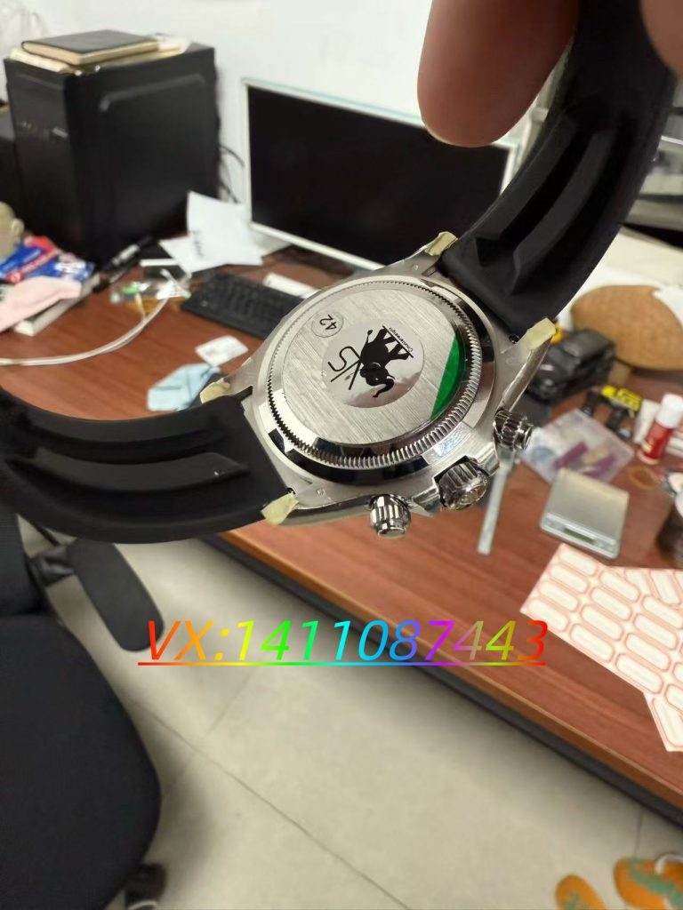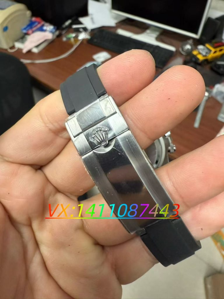 佩戴体验上,腕表搭配黑色橡胶表带,材质柔软亲肤,透气性出色,长时间佩戴不会产生闷热感。表带与表扣的衔接紧密,表扣采用重金属材质打造,内部刻字清晰,按合顺畅且锁定牢固,剧烈运动时也无需担心腕表脱落。整表重量经过精准配重,接近原版正品重量,上手不会有轻飘飘的廉价感,也不会因过重而产生压迫感,日常通勤、运动健身等场景都能轻松适配。