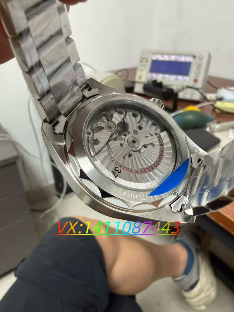 表背采用透底设计,能够直观看到内部机芯结构。VS 厂这款海马 150 世界时搭载定制版 8938 一体机芯,机芯夹板纹理、摆轮位置、自动陀刻字均按照正品样式还原,蓝钢螺丝与金色机芯纹饰搭配,视觉质感在线。作为一体结构机芯,其功能驱动逻辑与正品一致,世界时、日历、时间显示由同一机芯体系驱动,避免了改装机芯常见的功能错位与结构违和问题。