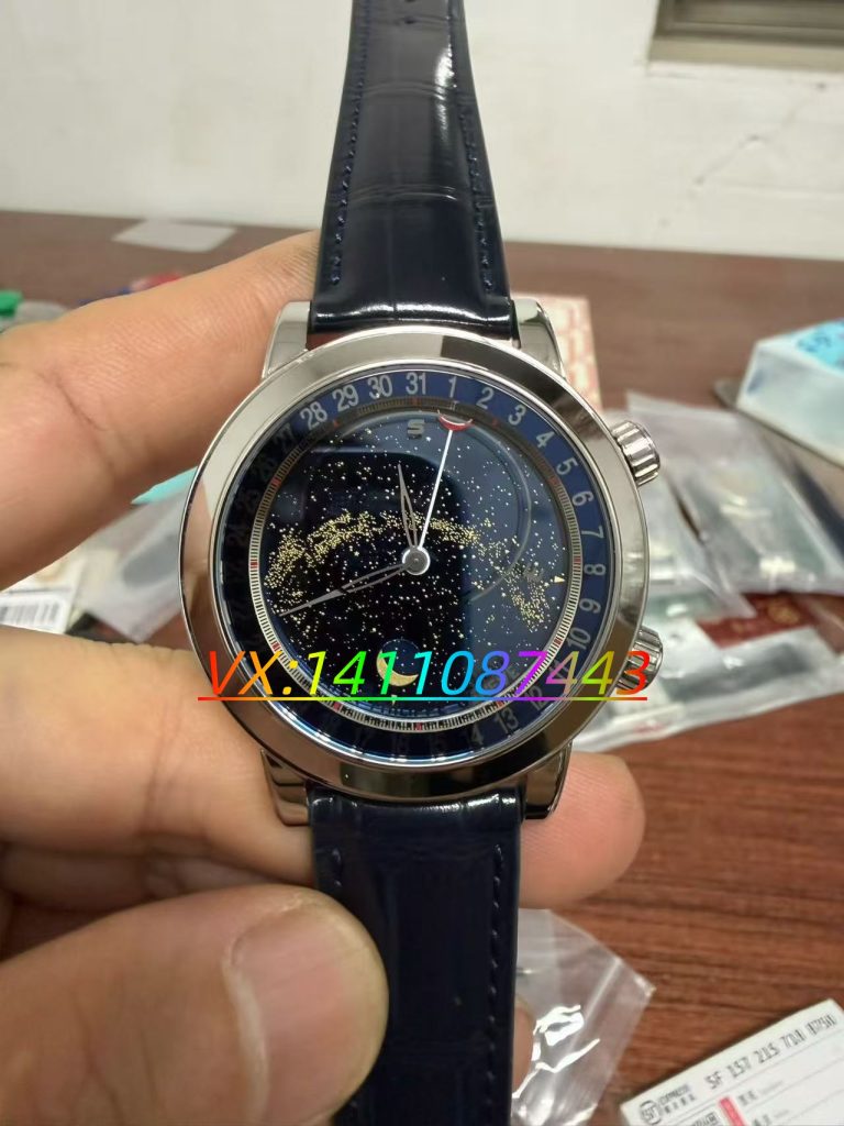 - 底层:黑色蓝宝石盘经激光蚀刻,精准呈现北半球日内瓦苍穹的繁星、星云与银河,星点密度、星云纹理与正品一致,无模糊、错位问题。