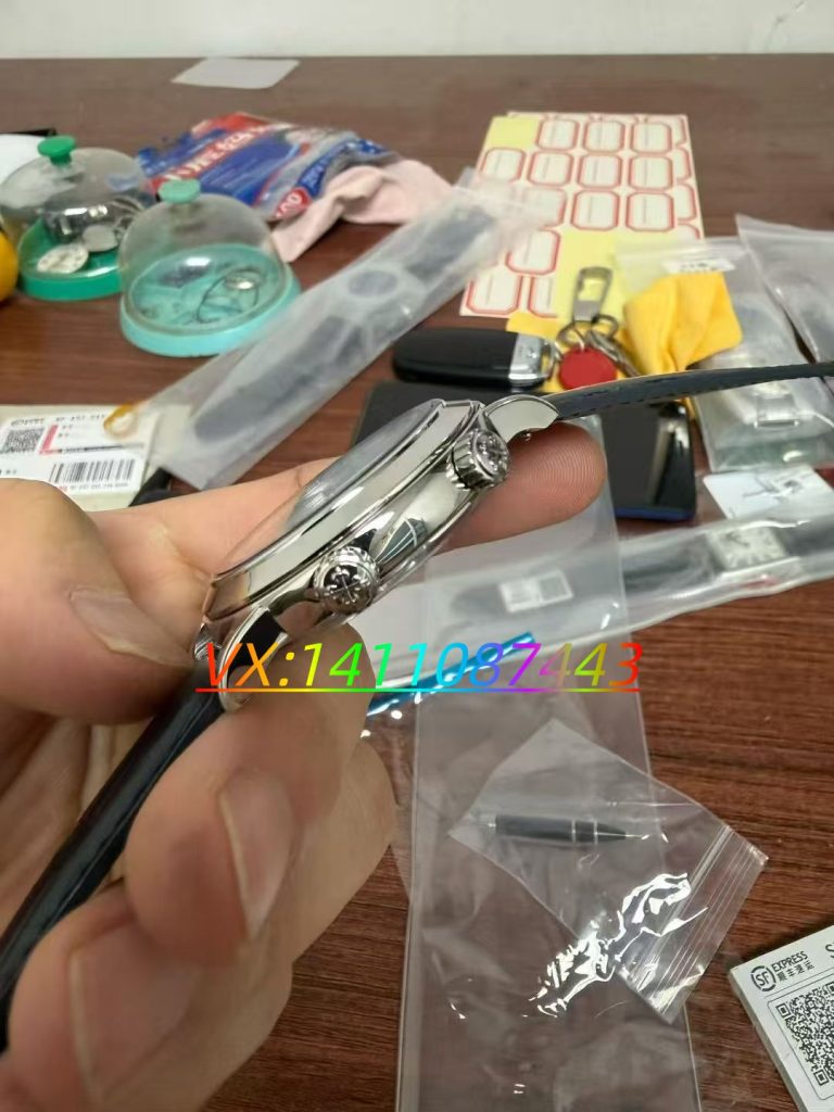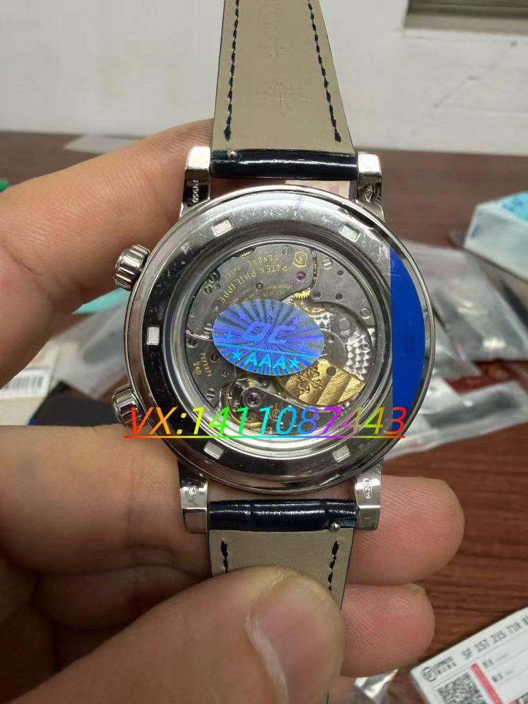 机芯功能完全还原正品:自动上链、双时区、星空转动、月相、日期显示五大功能同步运行,星空盘与月相的转动速度、日期跳转逻辑均与正品一致,无功能偏差。机芯打磨堪称复刻巅峰:珍珠陀(微型自动陀) 采用 18K 金仿真材质,日内瓦条纹、倒角抛光细腻,透过透底表底可欣赏机芯运转之美;机芯内部零件经去毛刺、抛光、防氧化处理,抗震、抗磁性能优异,应对日常磁场、震动环境,走时依旧稳定。