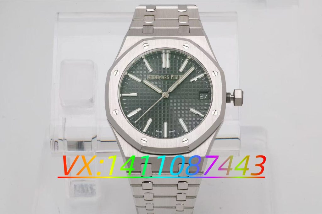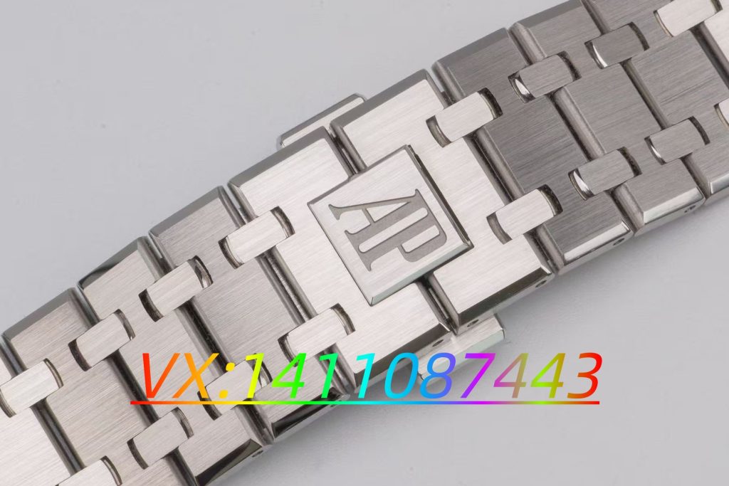 - 表带与表扣:精钢表带采用原版一致的节数与厚度,每节表带边缘打磨光滑,拉丝纹理均匀,无刮手情况;表扣为折叠扣,印有 “AP” 标识,开合顺畅,卡扣牢固无松动异响,内侧打磨细腻,长时间佩戴无压痕。